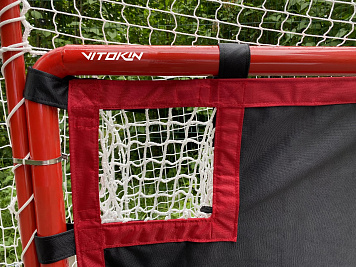 Крепится к ворот при помощи креплений на липучках.