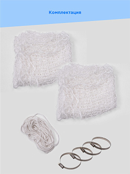 Комплектация: сетка, шнур для крепления сетки, ключ для сборки.