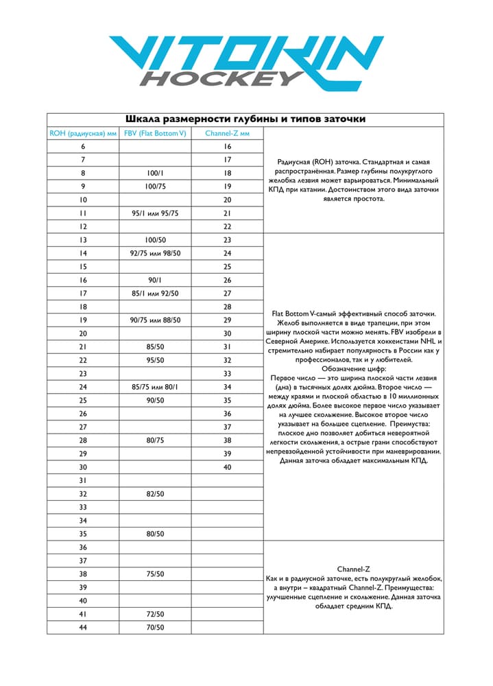 Многие непрофессиональные мастера затачивают слишком глубокие канавки, ввиду того, что не могут добиться нужной остроты на мелких. Это очень сильно влияет на скорость игрока, так как с глубокой канавкой игрок намного сильнее врезается в лед и ему приходится тратить много сил на набор скорости. Вам следует подобрать для себя канавку исходя из вашего веса, стиля игры и твердости льда. Нужно выбирать максимально пологую канавку, но чтобы даже на самых резких и крутых поворотах вам с запасом хватало остроты. Выбор канавки сугубо индивидуальное дело каждого. То что удобно одному, не всегда будет удобно другому. Но все же, не смотря на индивидуальность выбора, существуют определенные критерии подбора нужной канавки.